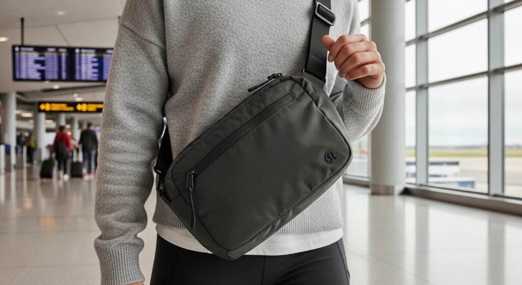 Beyond the belt bag, Lululemon now offers slightly larger crossbodies in soft, durable fabric with multiple pockets and adjustable straps. Water-resistant, lightweight, and surprisingly chic in black or soft neutrals.