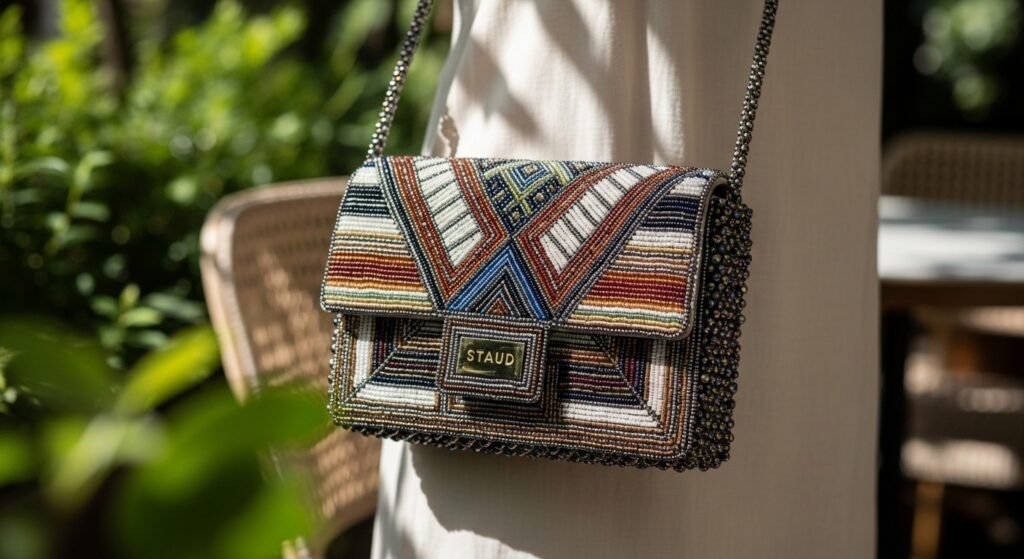 Fun, beaded crossbody that adds personality without being over-the-top. Lightweight, adjustable strap, interior pocket. Great for weekend travel when you want something a little more playful.