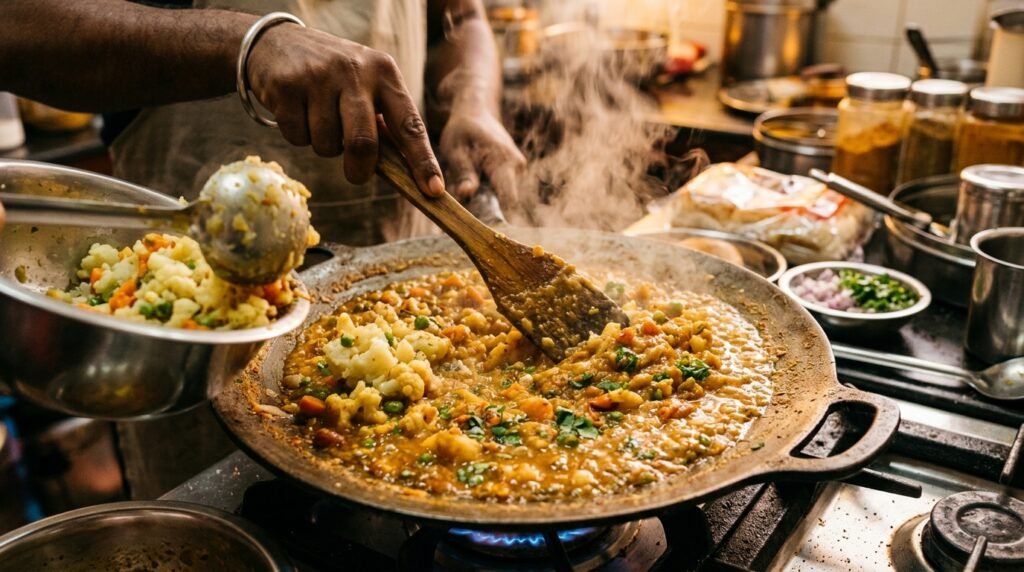 The Mumbai street food original version produces its signature flavor which has a rich buttery taste through a faster cooking method. You can achieve the ideal street-style texture through pressure cooker cooking together with complete vegetable mashing without needing to boil for multiple hours.