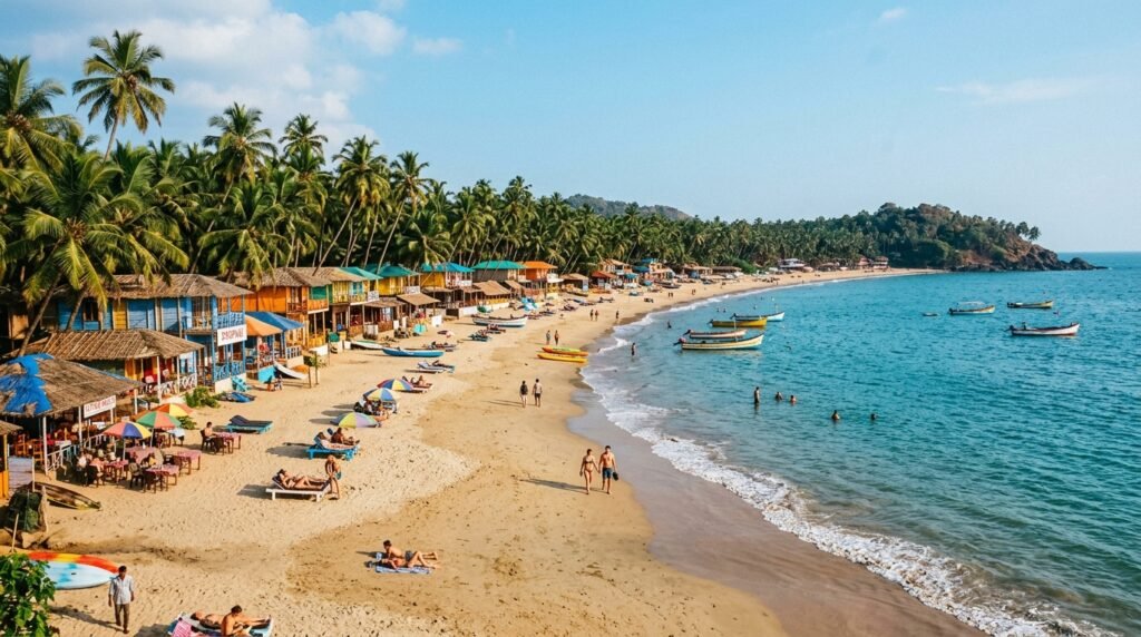 The North Goa Baga beach is well known with its colorful atmosphere and beautiful landscapes. Towards the evening, the Arabian Sea will be shone by the sun and will make the shoreline look glowing.