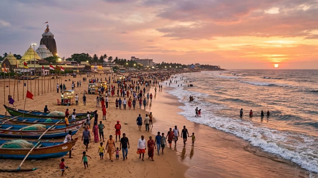 Odisha has the Puri Beach which offers a wonderful sea sunset within the Bengal bay. The waves are calm to create an inimitable seashore view with the sky scowling.