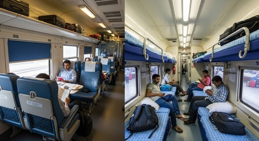 Sleeper Class is very affordable and without air conditioning. AC 3-tier will be comfortable yet with a moderate level of cost as opposed to AC 2-tier and the First AC which will provide more privacy and space with a traveller covering a distance.