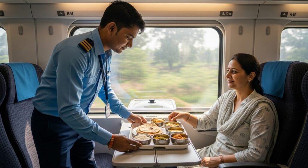 Another onboard pantry service in some stations besides e-catering services in which the meals are served at your seat on request is also available.