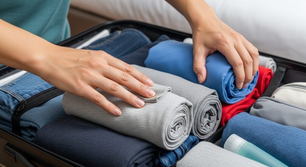 Clothes rolling will leave less space, and wrinkles will be prevented. You can also see everything in your bag without unpacking it.