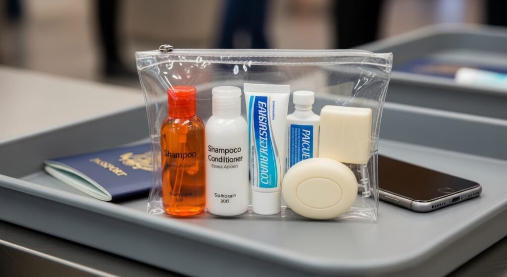 One does not require full-sized toiletries. Stick to the travel needs or refillable ones so that you can conserve space and satisfy airline requirements.