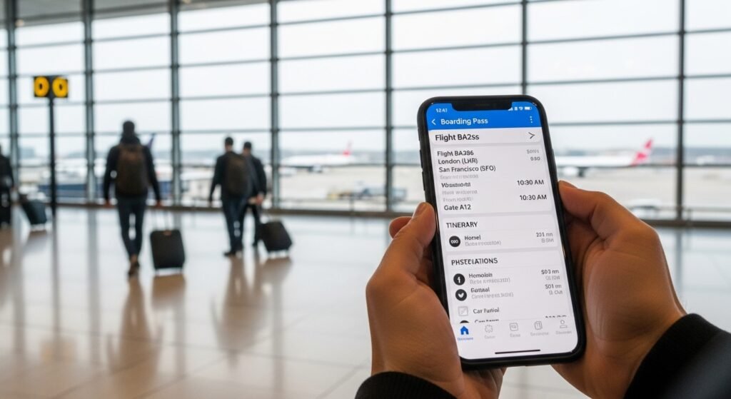Keep ticket and IDs and itinerary copies in your phone. It removes the mess of papers and puts it all in the reach of the hands.