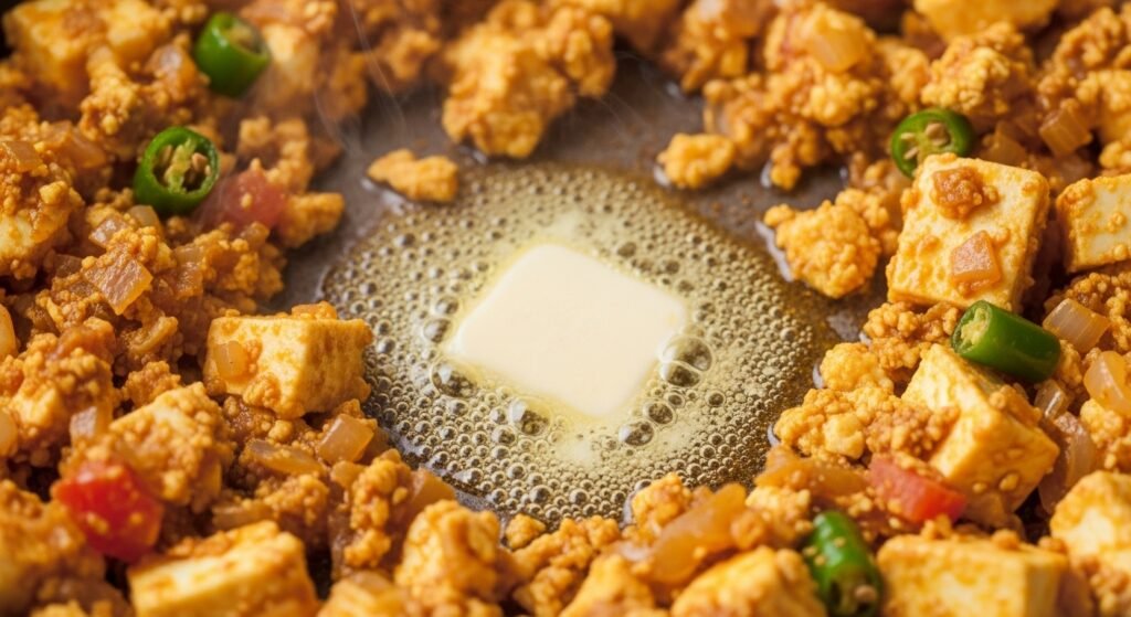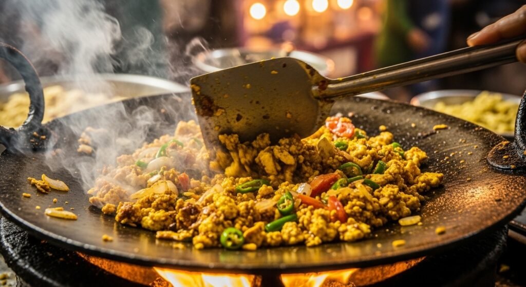 To obtain that local taste, bhurji must now be cooked at full heat in the final minute and smashed. It imparts something of a smoky flavour and a certain crudity that adds a taste of boldness and flavour to the dish.