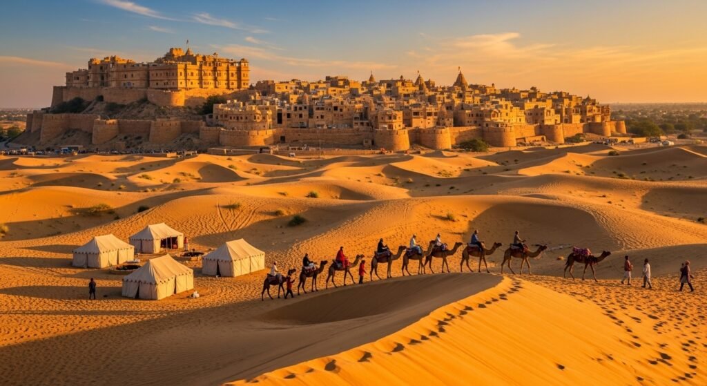 Jaisalmer is a place where one can enjoy the purple fort and desert on the winter. The weather is beautiful when they are on the camel safarising and the desert camps are glamorised in the evenings as it is enterprised with starry and clear skies.