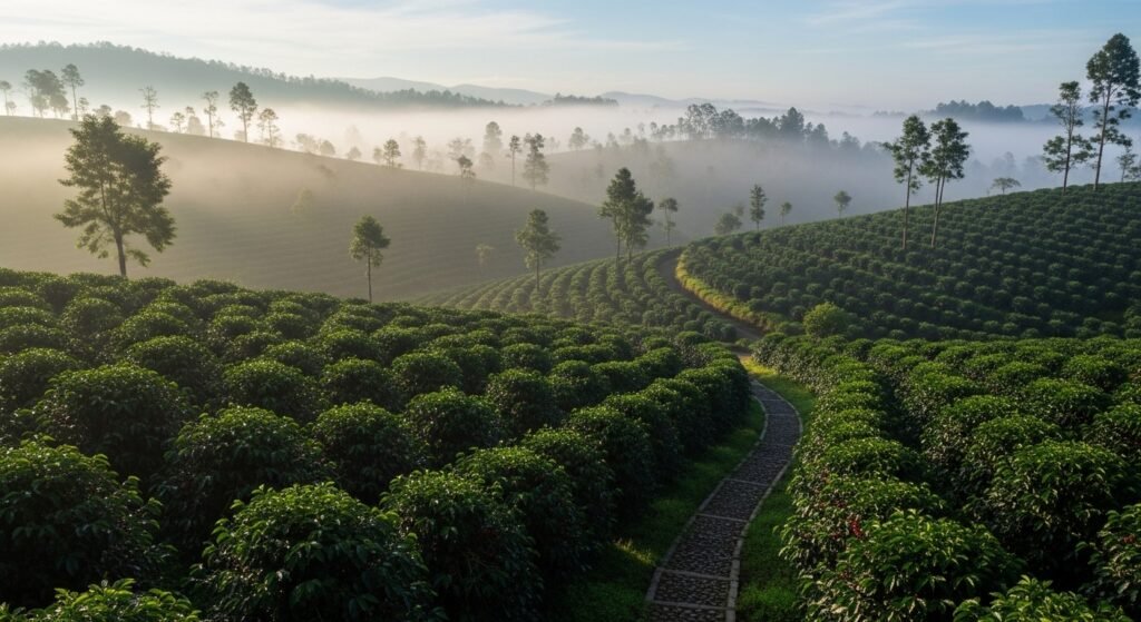 During winter Coorg coffee plantations look dreamy in mist. Its climate is very low to have a walk around the plantations, falls, and even enjoy the tranquil mornings with the greeneries.