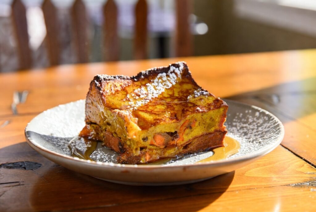 Most of these dishes are topped with maple syrup, powdered sugar, or a drizzle of cream cheese glaze. The warm pumpkin spice notes can also be contrasted with fresh berries.