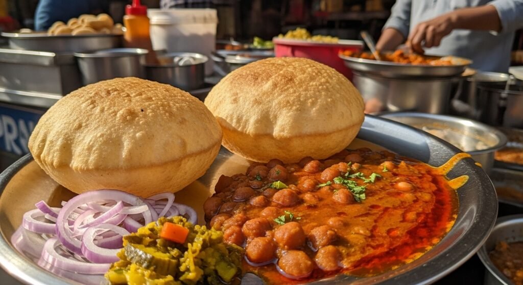 The chole bhature is a street food that is substantial in nature. It is probably a rich recipe where the first time visitor will be booked, the fried bread and hot chickpea curry, matted yet it is one of the complete dishes.