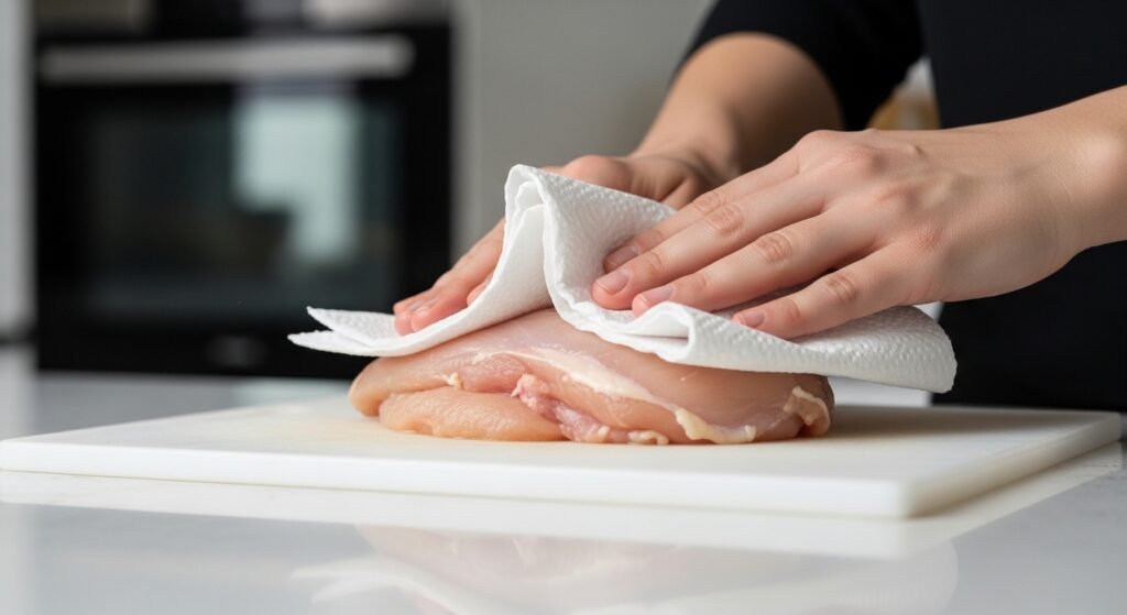 The deep frying is most successful with the dry. The first step on drying Pat then coated or fried because any excess water will make the oil splat and the final product will not look crispy.
