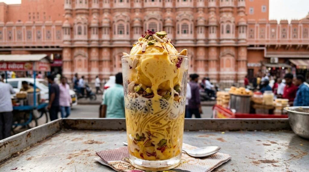 The Pink City, Jaipur functions as a dining paradise because it merges its royal heritage with its vibrant street food scene. The local food options include spicy snacks and rich creamy desserts which showcase the diverse cultural heritage and historical culinary traditions of Rajasthan and the city provides an outstanding dining experience through its popular quick service street stalls and its traditional dining options which cater to all customer tastes.